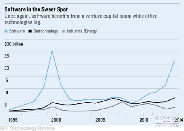 在集资平台,目前最大的赢家是做个性化产品的企业。根据普华永道和美国国家风险投资协会的年度研究数据,在风险投资领域,软件占据了大部分份额,2014年收入215亿美元,为全部投资金额的42%,远超收入60亿美元的生物技术和24亿美元的工业和能源类公司。