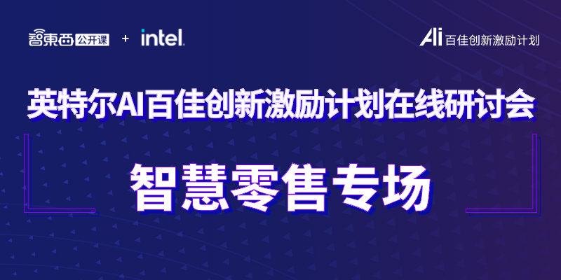 今年5月起,英特尔联合智东西公开课推出「AI百佳创新激励计划在线研讨会」。研讨会分为智慧零售专场、智慧医疗专场、智慧金融专场、智能机器人专场、智能语音专场和智能决策专场六大专场,将邀请英特尔AI百佳创新激励计划第六期入选的15家创新团队进行专题分享。