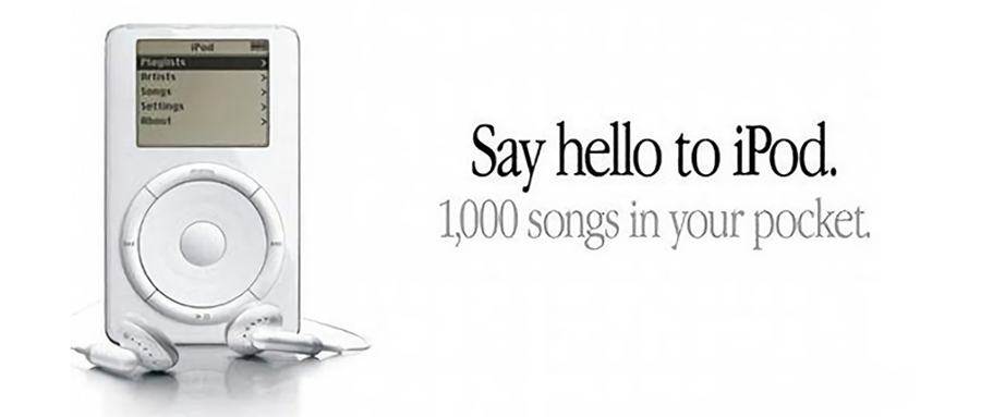 初代iPod是当时唯一一部拥有CD级音质,能存储1000首歌曲并能揣进口袋的MP3播放器,正如苹果全球市场营销高级副总裁Greg Joswiak所说,当时,iPod的出现不仅影响了整个音乐行业,也“重新定义了人们发现、聆听与分享音乐的方式”。