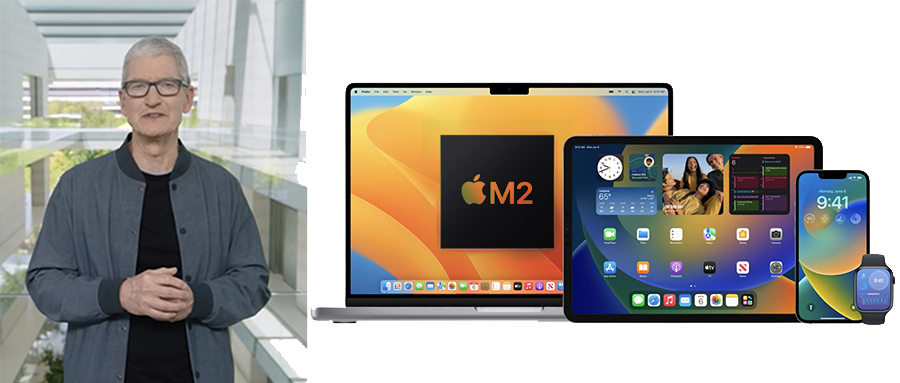 智东西6月7日消息,就在今天凌晨1点,苹果2022年全球开发者大会(WWDC)正式开幕,苹果CEO库克再次与我们见面,带来了一颗芯片、两款笔记本电脑新品和四大系统的诸多升级。