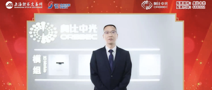 奥比中光董事长兼总经理黄源浩在今早的敲钟仪式上说,公司要在万物互联时代为智能终端打造“机器之眼”。