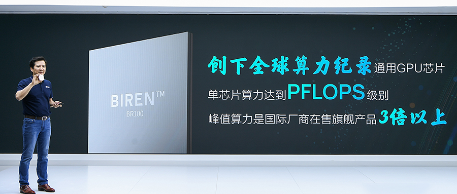 “全球通用GPU算力记录,第一次由一家中国企业创造。”在发布会上,壁仞科技创始人、董事长、CEO张文宣布,“中国通用GPU芯片进入每秒1,000,000,000,000,000次计算新时代。”