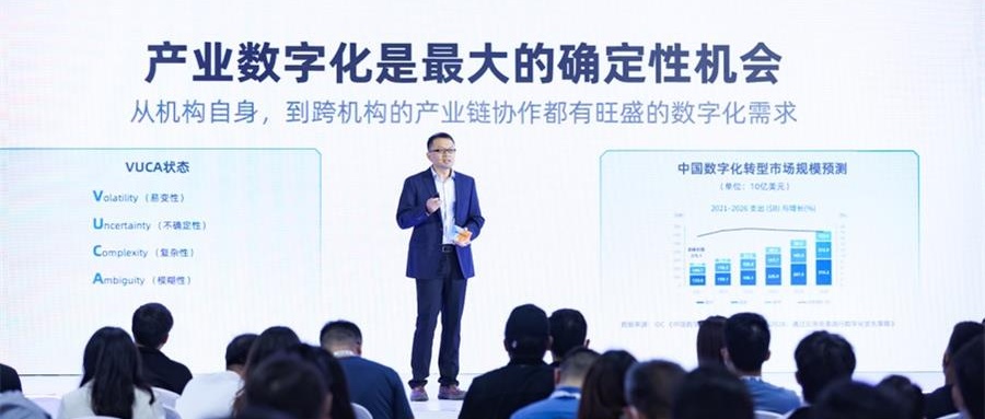 蒋国飞说:“全球经济发展面临极大不确定性,但产业数字化是最大的确定性机会。”