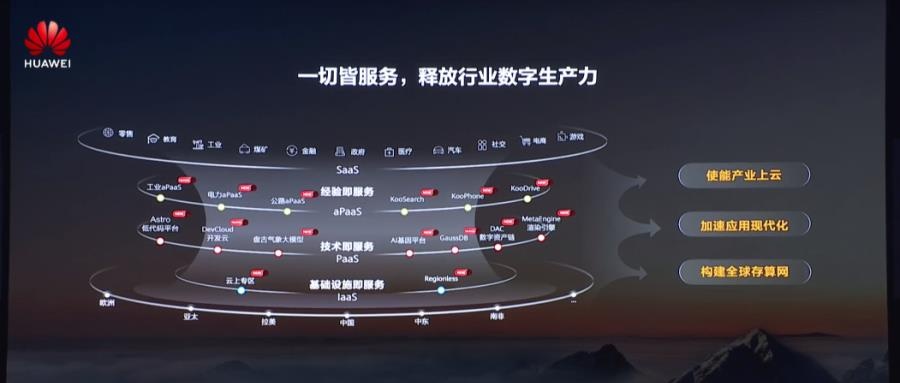 2021年,华为云提出“一切皆服务”理念,从基础设施即服务(IaaS)、技术即服务(PaaS)、经验即服务(aPaaS)三大方面服务客户。