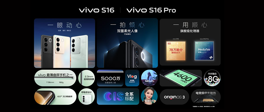 智东西12月22日晚间消息,刚刚vivo发布了S16系列三款旗舰智能手机新品,vivo S16系列在影像、性能、设计三个方面进行了重点升级。vivo S16系列首次采用了双面柔光人像,还增加了颜如玉配色。