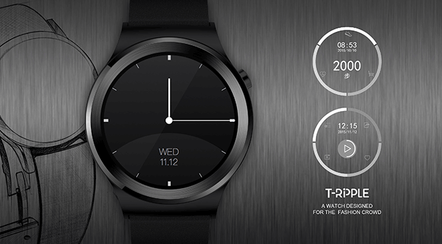 在不久前的一次见面中,智东西(公众号:zhidxcom)记者曾见过汪伟已经戴上这款命名为T-RIPPLE(涟漪)的产品,使用主流的液晶圆屏,金属框架,传统机械手表的造型和设计风格,使用皮质表带;不过当时还在最后的优化阶段。
