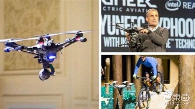 自动避障无人机(Yuneec)台风 Typhoon H 借助 RealSense 技术,使用 3D 摄像头通过红白探测的方式来对周围的物体进行判断,以此来实现躲避倒塌物的避障飞行功能。其拥有 4K 摄像头,支持 360 °全景拍摄,最高像素达1200万,将在半年内上市,售价 1799 美元。