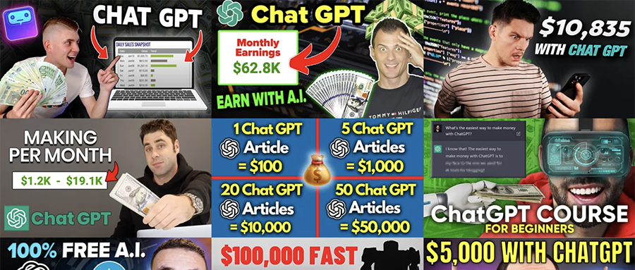 智东西2月6日消息,近日,国外社交平台YouTube、Instagram和TikTok上,涌现出一批教你如何用生成式AI语言模型ChatGPT赚钱的视频,让你轻松赚取数万美元。这些视频教程在社交平台上十分火爆,其浏览量已经达到数十万次,并出现在搜索关键词为“ChatGPT”等的前几个结果中。