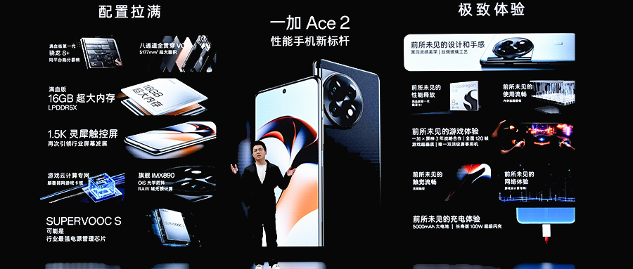 此外,一加 Ace 2首发了1.5K“灵犀触控屏”和“SUPERVOOCS全链路电源管理芯片”等多项自研“黑科技”,并搭载了索尼IMX890主摄。