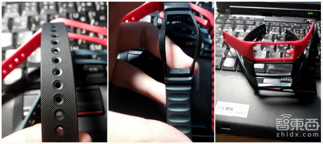 主体上无可挑剔,无论是前面的面板还是后面的刻字都尽显出了精致与细心.但到了腕带部分也是有点可惜,和 bong 一样都是会出现或多或少的毛刺,让人心里还是有些不舒服.不过白色腕带对于这种情况改进了许多,摸上去的感觉也比标配的黑色腕带好了很多.