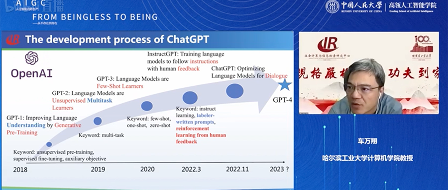 智东西3月13日报道,昨日,由中国人民大学高瓴人工智能学院主办的AIGC论坛在北京举行,本次会议以“AIGC:从不存在到存在”为议题,探讨对话生成模型、多媒体内容生成等人工智能(AI)前沿技术的发展趋势。