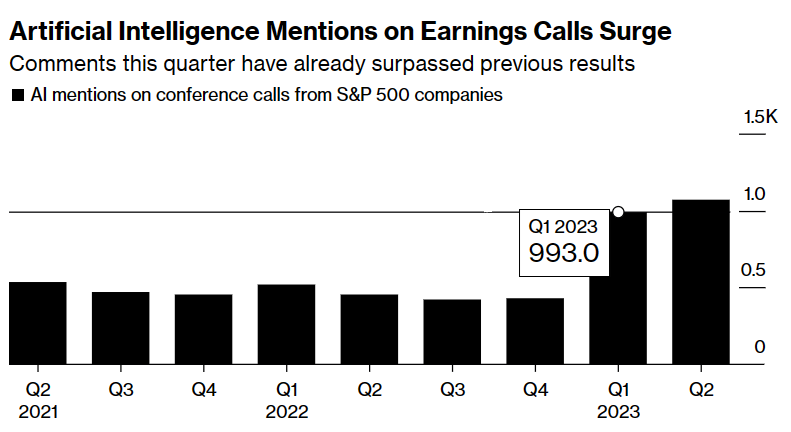 据彭博社今日报道,美国各大科技公司在与投资者的电话会议中,AI以及相关话题被提及次数较去年翻番。据彭博社调查数据显示,在美国500家上市公司中,2023年第一季度在电话会议中提及AI的平均次数高达1100次。OpenAI在第四季度财报电话会议中提及AI的次数增加了77%,苹果CEO库克在本周四召开的电话财报会议中也指出,公司已在大部分产品阵容中使用了AI,将继续将AI技术添加到更多的产品当中。