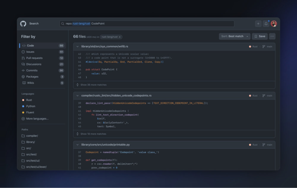 GitHub全新的代码搜索正式上线后,有网友大赞其功能,称这是5年来最令人印象深刻的产品,优秀到可与ChatGPT媲美。