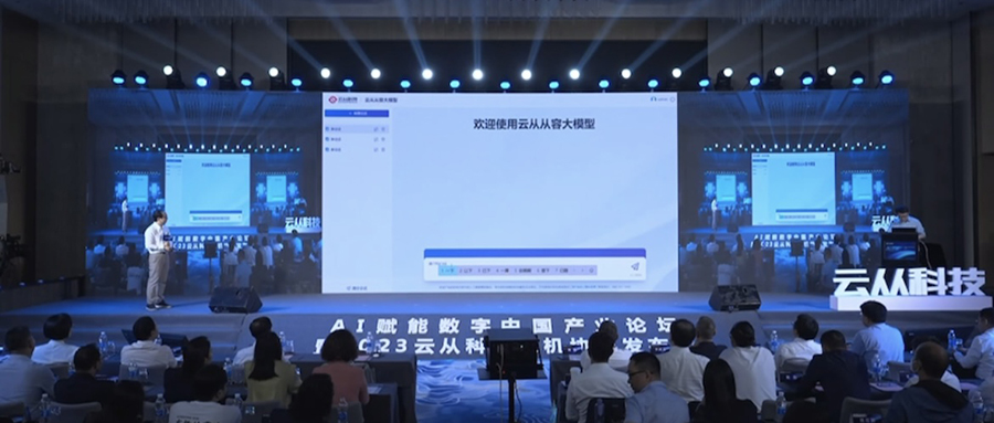 从容大模型的对话界面跟ChatGPT差不多。云从科技技术管理部总监叶懋现场进行了从容大模型的基础能力演示。