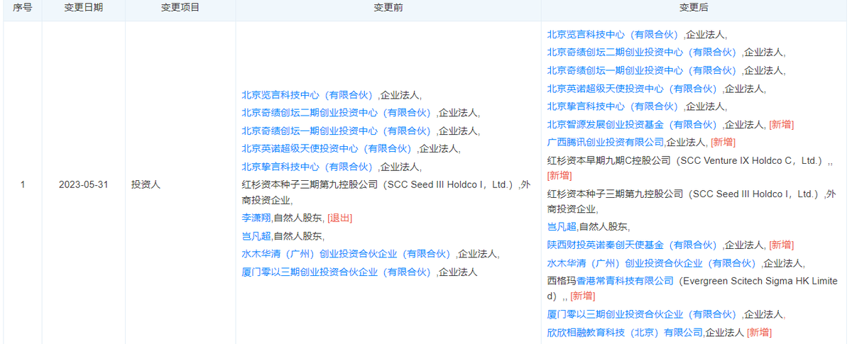 据投资界6月2日消息,天眼查App显示,近日,北京深言科技有限责任公司发生工商变更,股东新增腾讯旗下广西腾讯创业投资有限公司、好未来旗下公司欣欣相融教育科技(北京)有限公司等。同时,其注册资本由约131.6万人民币增至约183.5万人民币。