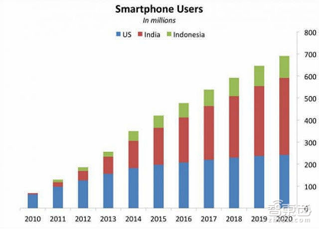 印度方面,预计2016年将有2.04亿智能手机用户,并在2017年超过美国。