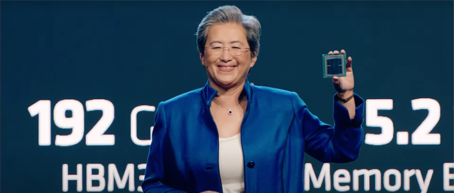 在展示下一代AI芯片MI300X加速器时,苏姿丰满面笑容地说:“我爱这颗芯片”。