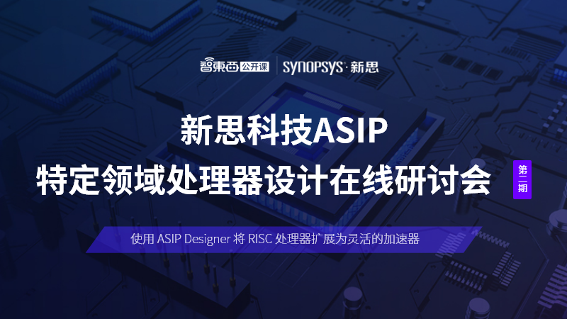 去年6月,新思科技联合智东西公开课策划推出了「新思科技ASIP特定领域处理器设计在线研讨会」,以闭门形式进行。新思科技处理器解决方案产品线高级技术经理王伟、新思科技ASIP工具高级应用工程师翟宝陆两位技术专家,分别围绕《使用ASIP Designer加速特定领域处理器设计》、《案例研究:加速MobileNetV3的AI专用处理器Tmoby》、《案例研究:利用ASIP Designer实现立体图像匹配加速器Tmatch》进行了直播讲解。