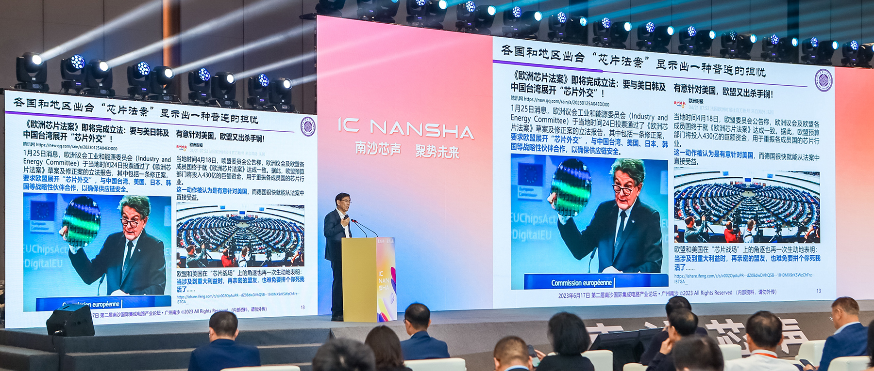 最典型的例子就是欧洲的芯片法案,3月份他们通过了很重要的立法程序。欧洲时报发了一篇文章,“有意针对美国欧盟又出杀手锏”,出现了大家想象不到的情况。每个国家都自己搞一套,最终的结果是什么?一定会使全球化停滞,一定会使全球的供应链出现碎片化,这是必然现象。