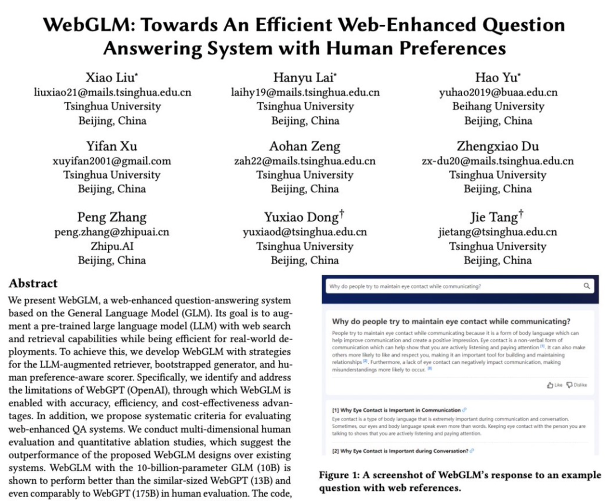 2、清华唐杰新作WebGLM 性能超WebGPT