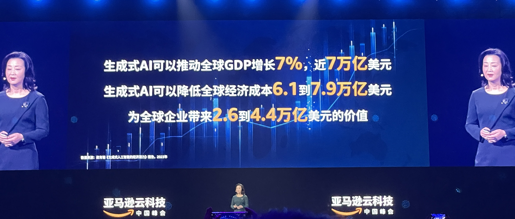 智东西6月27日消息,2023亚马逊云科技中国峰会今日在上海召开。会上,亚马逊云科技大中华区执行董事张文翊聚焦近期爆火的生成式AI,探讨了该技术能为企业带来的价值,以及亚马逊云科技能够为企业释放生成式AI的潜力带来哪些助力。