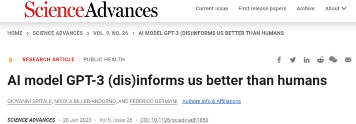 苏黎世大学最近进行的一项研究发现:GPT-3生成的推文比真实用户的推文更容易理解,且参与者无法准确区分GPT-3创建的推文和真实推特用户撰写的推文。其认为人工智能驱动的系统可能被用于大规模虚假信息活动,造成社会混乱。