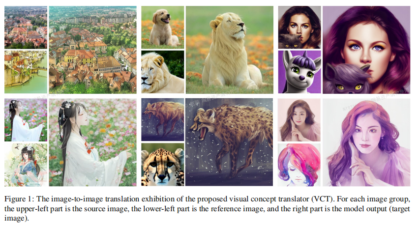 近日,网易互娱AI Lab的一篇关于图像生成的学术论文《General Image-to-Image Translation with One-Shot Image Guidance》被国际计算机视觉顶级学术会议ICCV 2023接收。网易互娱AI Lab提出了一种通用的基于单样本图像引导的图像编辑技术VCT(visual concept translator,视觉概念转换器),给单张参考图像,经过少量的优化步骤,即可把图中的物体或风格迁移至源图像,同时不改变源图像的整体结构。