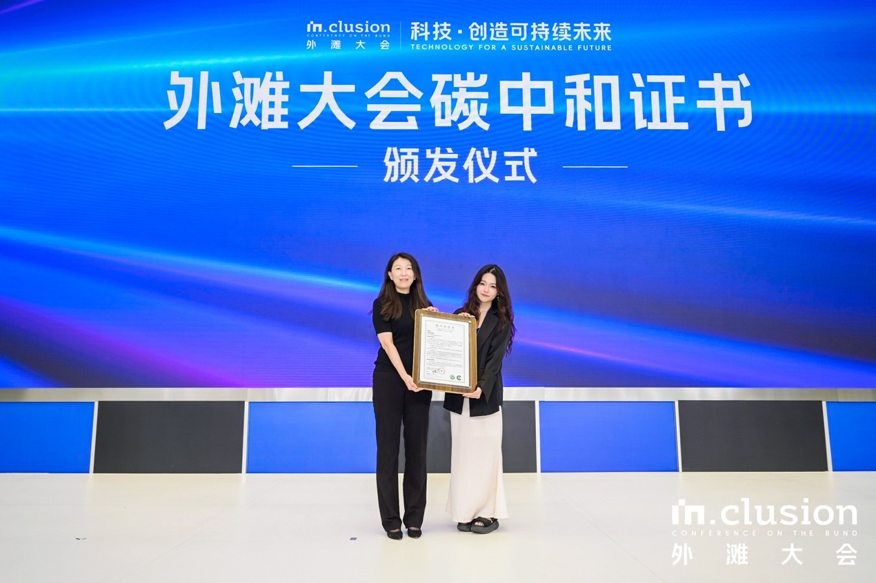 9月9日,外滩大会的最后一天,中环联合认证中心对外滩大会进行排放核查,并向外滩大会颁发《碳中和证书》。也就是说,通过践行绿色办会,外滩大会成功实现办会“碳中和”。