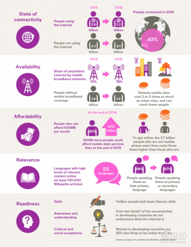 Facebook发布2015年全球互联网接入报告。根据这份报告显示,截至2015年底,全球上网人口达到32亿人,比2014年多出2亿人,部分原因是上网费用下降和全球收入增长。曝报告显示,过去10年中,全球上网人口每年增加约2亿至3亿人。