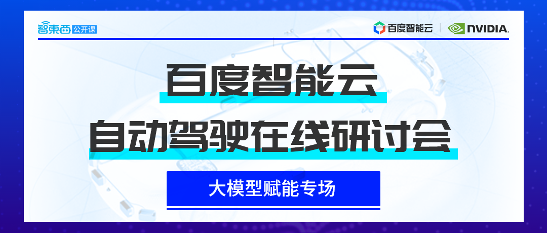 在上述背景下,智东西公开课联合百度智能云、NVIDIA,将于10月23日推出「百度智能云自动驾驶在线研讨会」大模型赋能专场。