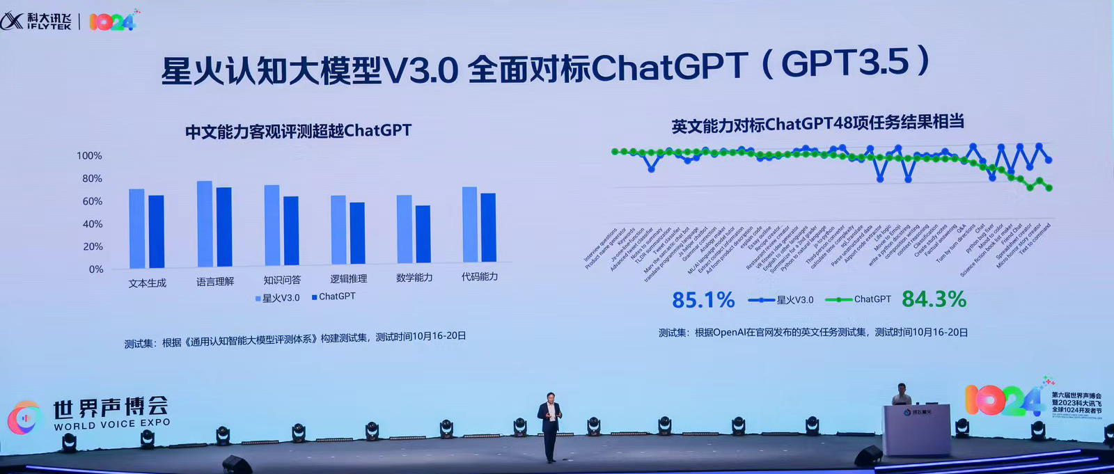 今年5月6日,讯飞发布星火认知大模型1.0版本,当时刘庆峰提出要「追赶并努力超越OpenAI」的目标,并放出在10月24日开发者节发布赶超ChatGPT的星火大模型的狠话,时隔近半年,讯飞果然兑现了承诺,交出大模型中国方案的「新答卷」。