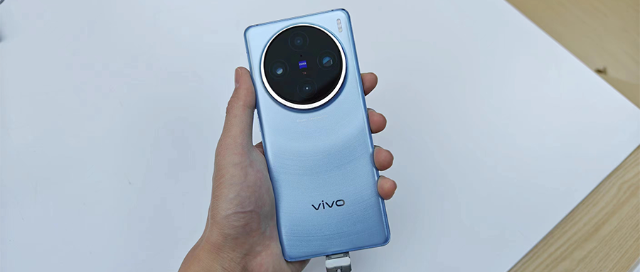 蓝色版本的vivo X100系列,其背板在不同光线下会呈现不同的视觉效果,真机实际使用的颜值还是不错的。
