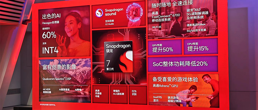 此次高通展示的第三代骁龙7移动芯片继承了不少三代骁龙8上的旗舰级技术特性,在AI、影像和性能方面的提升较为明显。