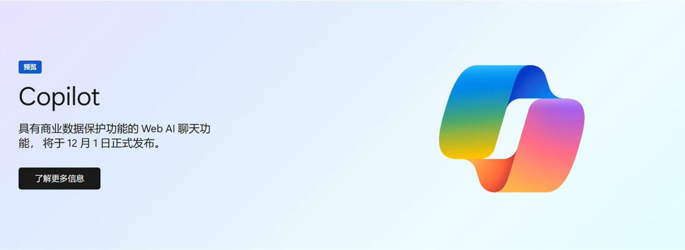 根据微软官网,微软Copilot具有商业数据保护功能的Web AI聊天功能将于今年12月1日正式发布。微软官方页面显示,Copilot适用于160多个地区,服务可支持简体中文,但中国大陆地区用户尚不可使用这一服务。
