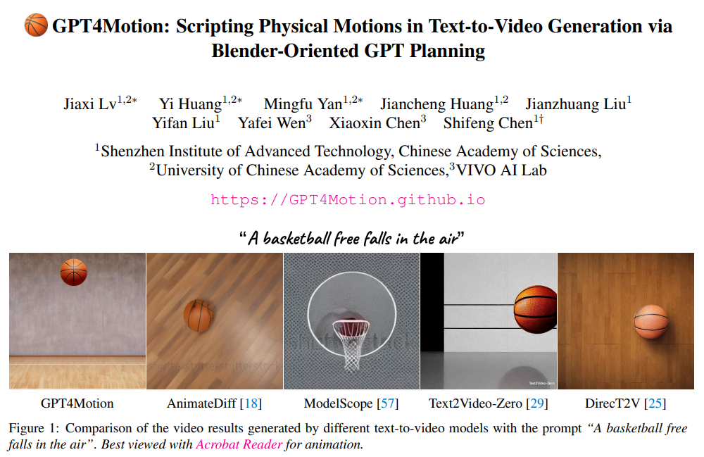 据机器之心报道,11月21日,来自中国科学院深圳先进技术研究院、中国科学院大学和VIVO AI Lab的研究者联合提出了一个无需训练的文本生成视频新框架GPT4Motion。GPT4Motion结合了GPT等大型语言模型的规划能力、Blender软件提供的物理模拟能力,以及扩散模型的文生图能力,旨在大幅提升视频合成的质量。
