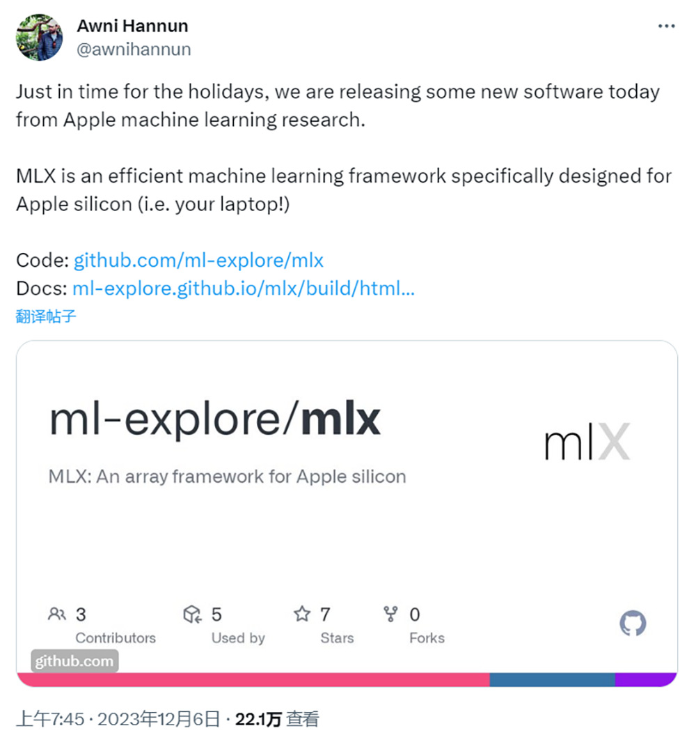 3、苹果开源用于芯片设计的机器学习框架MLX