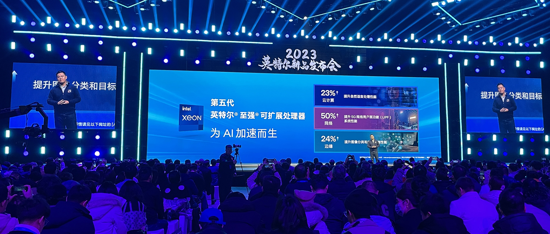芯东西12月18日报道,在12月15日举行的2023英特尔新品发布会暨AI技术创新派对上,英特尔正式推出第五代英特尔至强可扩展处理器(代号Emerald Rapids)。这也是第五代英特尔至强可扩展处理器首次在中国亮相。