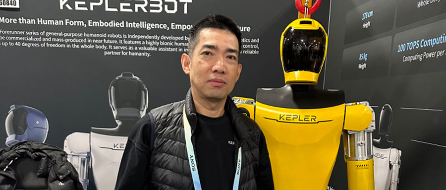 ▲开普勒探索机器人联合创始人、副总裁胡德波与开普勒人形机器人