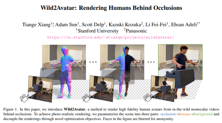 斯坦福大学教授李飞飞的团队于1月1日在arXiv上发表论文,提出一种3D神经渲染方法Wild2Avatar,能够将被视线遮挡的人体完整地渲染出来。该方法将场景解耦为三个部分:遮挡、人类和背景,并设计了大量目标函数,以帮助将人与遮挡和背景解耦,并确保人体模型的完整性。