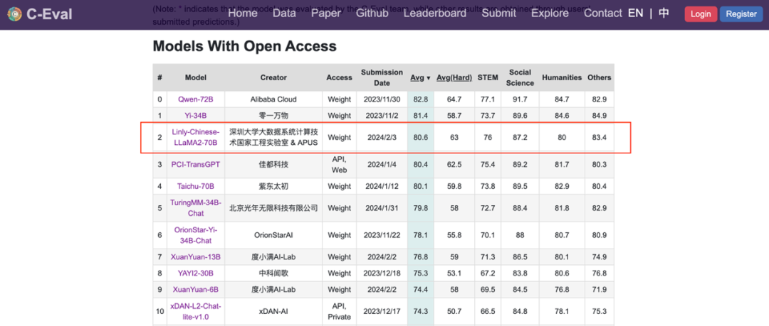 近日,APUS与深圳大学大数据系统计算技术国家工程实验室联合研发的伶荔Linly-70B中文大模型,在GitHub上正式开源,这是APUS大模型3.0的首个开源大模型。APUS大模型3.0伶荔在中文基准测评榜单C-Eval上获得80.6分,在所有参评模型中排名第三,更加适配中文场景,中文场景能力更加突出,跻身700亿以上参数开源大模型第一梯队。基于APUS郑州智算中心强大的计算能力,APUS大模型3.0伶荔在中文扩表后进行了严格训练,显著提高了模型的训练效率和准确性。该模型的上下文长度设定为4096,能够处理大约8000-10000个汉字的文本输入,从而更好地理解和生成中文语境下的自然语言,提高其在中文任务表现。