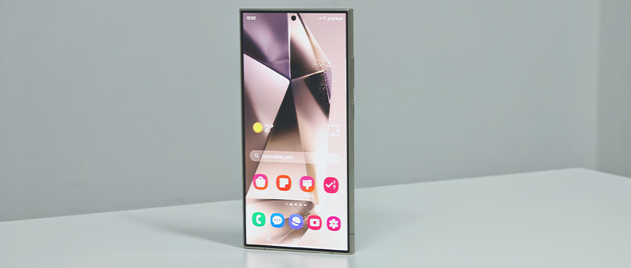 Galaxy S24 Ultra的正面依然是一块边缘略微带有一点点弧度的直屏,这样一定程度上可以兼顾手感和边缘无畸变。