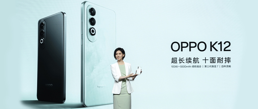 智东西4月24日报道,今天下午,OPPO正式发布了OPPO K12系列中端智能手机新品,其搭载100W闪充和5500mAh电池,采用了自研的抗摔金刚石架构,搭载高通第三代骁龙7移动平台,以及自研内存基因重组技术、焕新存储技术。