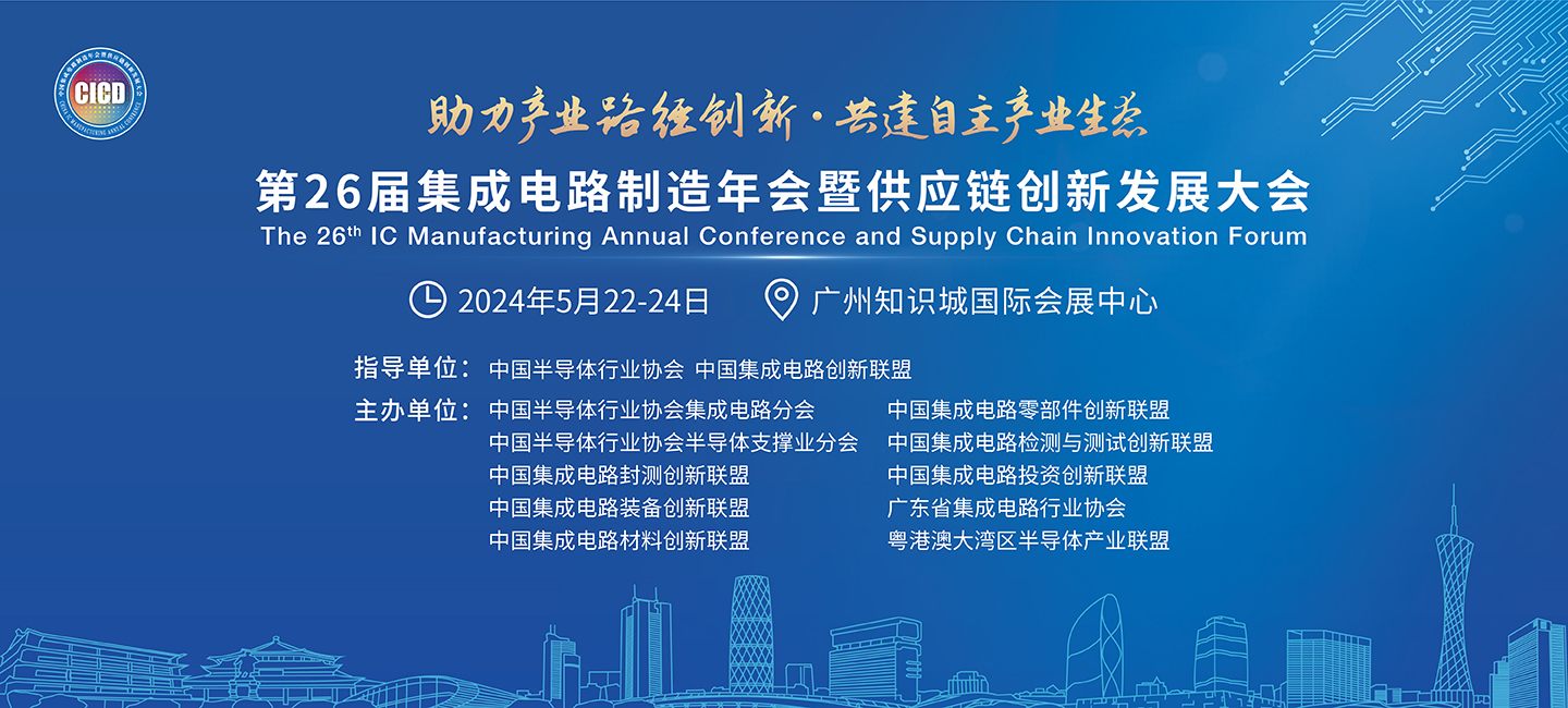 第26届集成电路制造年会暨供应链创新发展大会(CICD)将于2024年5月22-24日在广州黄埔区知识城国际会展中心开幕!本届大会以“助力产业路径创新 共建自主产业生态”为主题,汇聚政府领导、国内外知名企业家、专家学者、行业大咖等,通过高峰论坛、圆桌会议、专题论坛、展览展示等多种形式,搭建“产业发展动员会、行业信息发布会、企业合作交流会”。