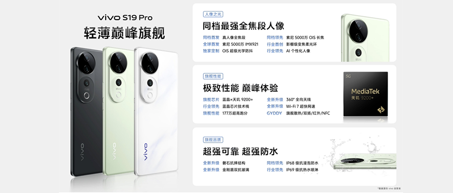 智东西5月30日晚间报道,刚刚vivo正式发布了vivo S19系列新品,据了解,vivo与索尼联合研发了IMX 921传感器,搭配变焦柔光环以及自研算法,专门优化了人像拍照。