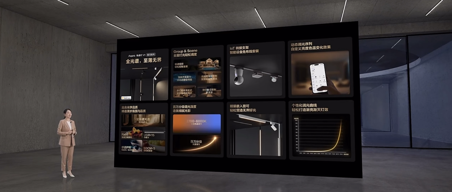 今天,Aqara发布高端V系列Aqara银河系列磁吸轨道灯V1。V1采用了全光谱光源,拥有Ra98超高显色指数,Aqara合伙人兼高级副总裁彭江波谈道,全光谱光源光谱连续性更好、缺失率更低,这种光源可以自然展示物体颜色。较上一代轨道灯,V1的功率和光通量平均提高了30%。