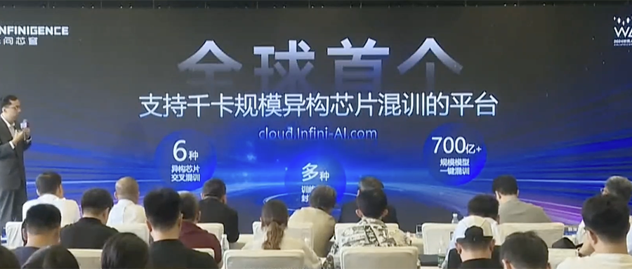 同时,夏立雪宣布无问芯穹Infini-AI云平台已集成大模型异构千卡混训能力,是全球首个可进行单任务千卡规模异构芯片混合训练的平台,具备万卡扩展性,支持包括AMD、华为昇腾、天数智芯、沐曦、摩尔线程、NVIDIA六种异构芯片在内的大模型混合训练。