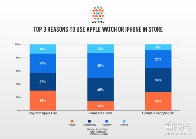 调查机构Wristly Pro综合了全球1250名受访者的反馈,数据表明40%的用户由于使用Apple Watch,改变了他们的习惯,开始愿意使用Apple Pay。