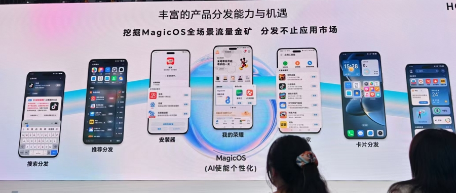 在对于开发者颇为重要的分发环节,荣耀的应用市场可以在搜索、推荐、安装器、卡片等场景领域提供更多流量分发的方式。包括荣耀应用市场在内,目前荣耀对于开发者提供的资源扶持价值达到了20亿元。