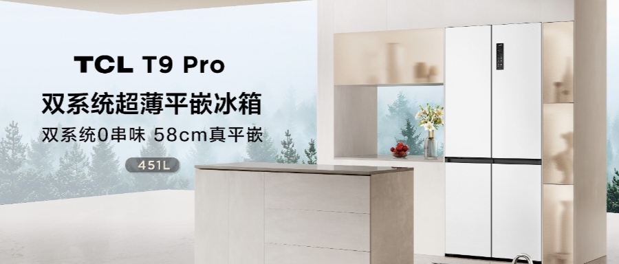 TCL T9 Pro最主要的升级是使用了双系统三循环技术,可以减少食材之间的干扰、减少串味。此外,其机身厚度为58cm,可以与60cm标准深度橱柜无缝嵌入。同时,其搭载了全域养鲜、全域净化等TCL在冰箱领域的最新技术。