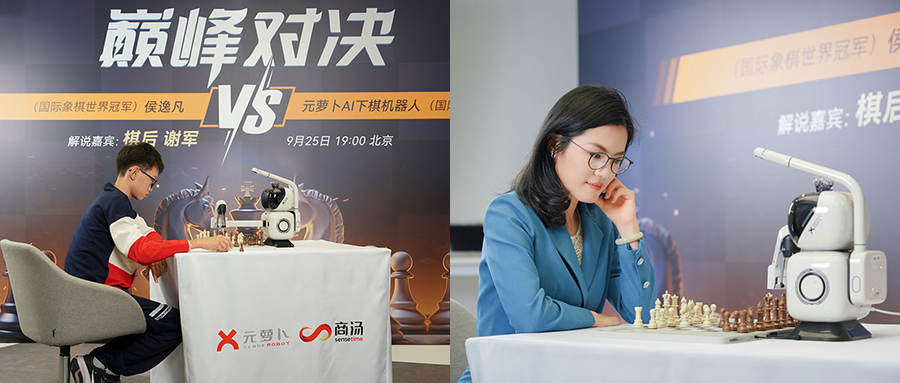 “元萝卜国象机器人”是商汤科技继“象棋版”和“围棋版”后推出的第三款AI下棋机器人产品——AI下棋机器人国际象棋专业版。对战全程,由中国首位女子国际象棋世界冠军、世界棋后谢军,与商汤科技联合创始人、元萝卜总裁马堃共同进行解说、讲解和复盘。